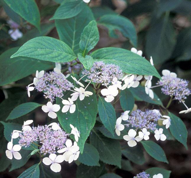 Hydrangea serrata 'Bluebird' Wuchs: Kleiner, breitbuschiger, locker aufrechter Strauch. Grösse: 1 bis 1,5 m hoch und breit. Triebe: Jahrestriebe grün, im Bereich der Nodien rötlich überlaufen (doc...