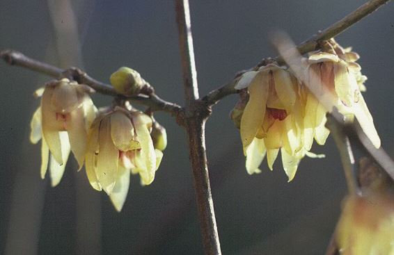 Ein selten gepflanzter, doch sehr attraktiver Winterblüher ist Chimonanthus praecox. Der etwas frostempfindliche Strauch ist in O-China beheimatet und wurde 1766 nach Europa eingeführt. Trotz seiner Blütezeit im zeitigen Frühjahr ist die Pflanze auf Bienen und Fliegen als Bestäuber angewiesen. Diese werden durch einen intensiven, süssen Honigduft der wachsigen Blüten angelockt und mit Nektar belohnt.