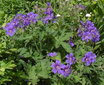 Pracht-Storchschnabel Wuchs aufrecht buschig, horstbildend bis dichtbuschig, lockerbuschig, Höhe: 40 bis 60 cm Blüte blauviolett von Juni bis Juli Blätter Farbe: mittelgrün, Blattform: 5-7 teil...