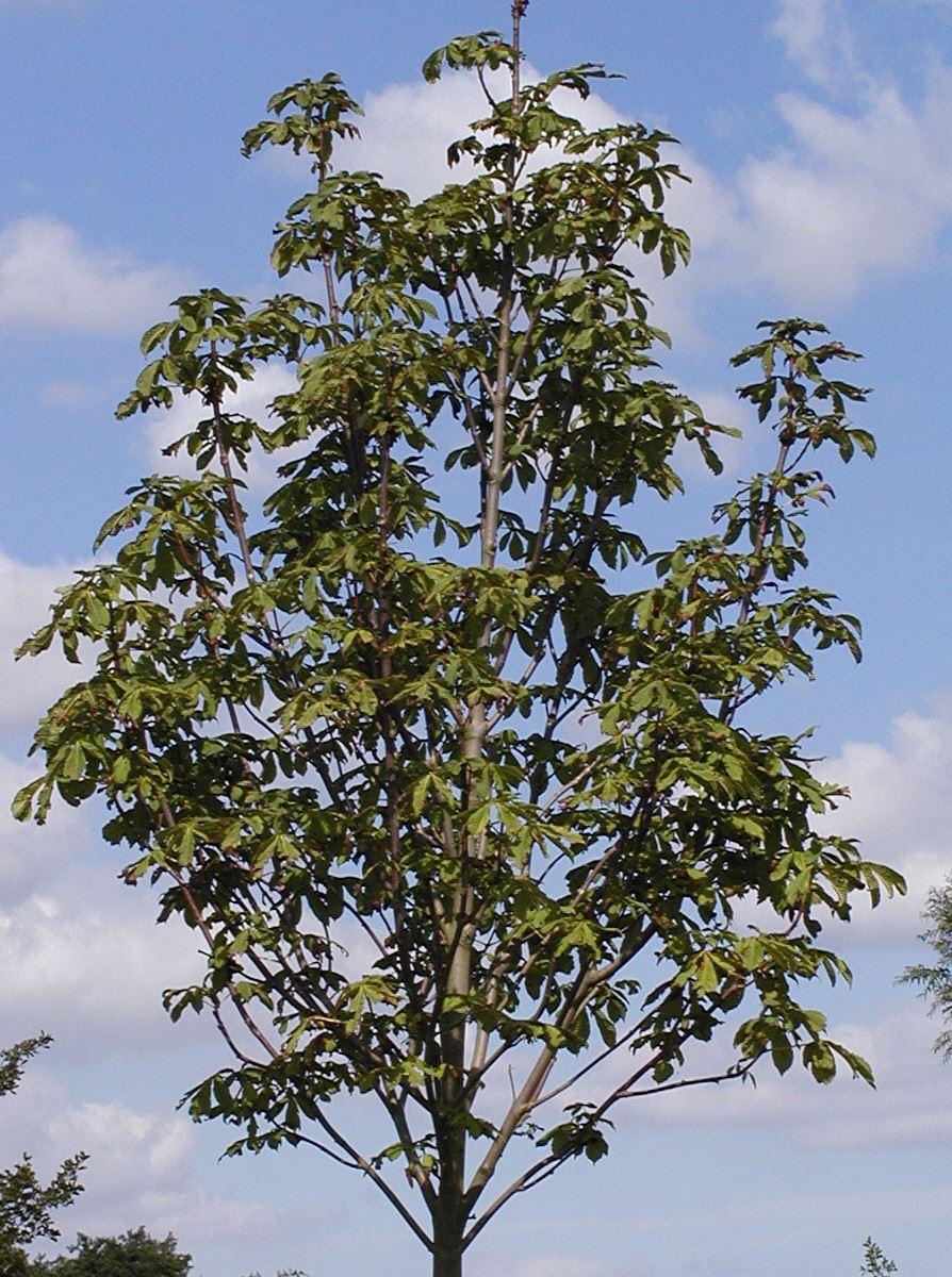 Grosser Baum mit schmal kegelförmiger Krone. Später breiter wachsend. Höhe 1-15 m. Langsam wachsend. Großes, glänzend dunkelgrünes Laub. Früh im Austrieb. Aufrechte Dolden mit weißen Blüten im Mai....