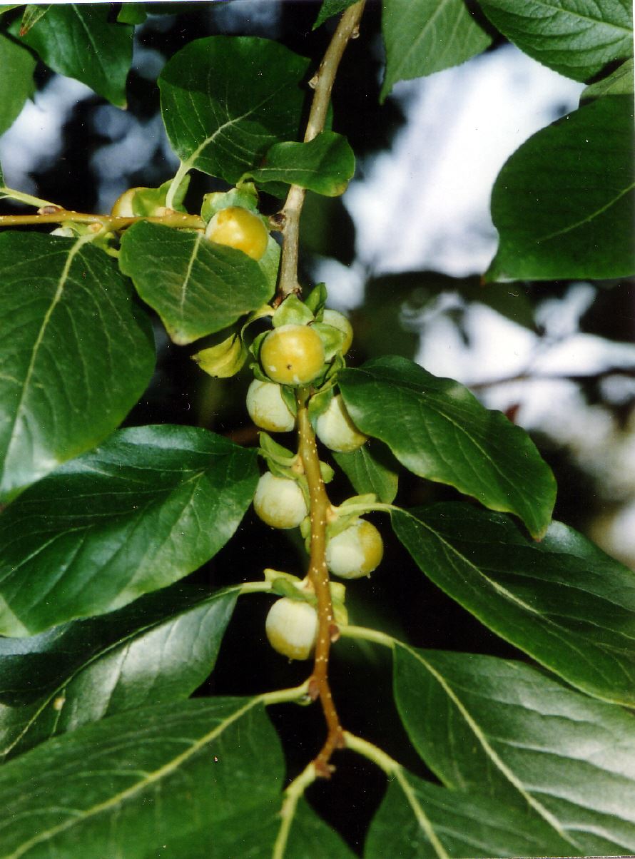 Diospyrus lotus - DATTELPFLAUME - EBENACEAE Diospyrus lotus Lotospflaume. Baum bis 14 m, Krone rund, Zweige grau, behaart; Blätter elliptisch- länglich, spitz, 6-12 cm lang, zuerst beiderseits...