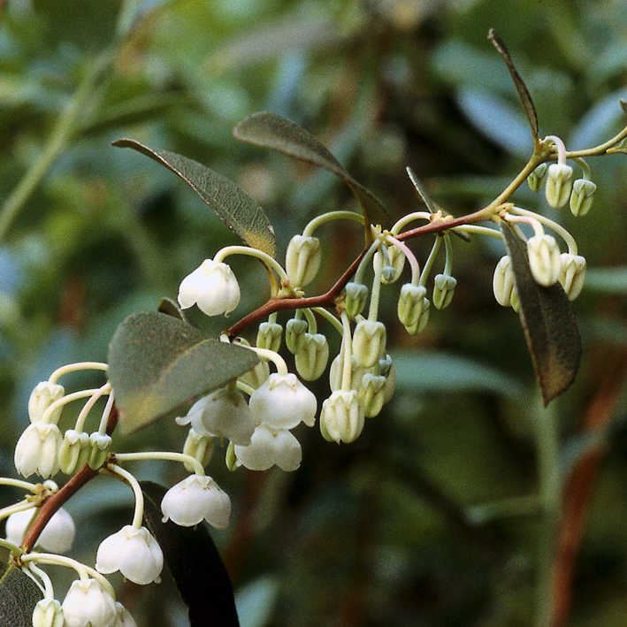 Halbwintergrüner Strauch bis ca. 7 cm hoch. Auffallend blau-weiss bereiftes Laub. Glockenförmige, rahmweisse Blüten im Mai und Juni. Sonnig bis halbschattig. Gedeiht auf humosen, leicht saurem Gart...