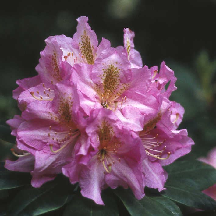 Immergrüner, langsam wachsender Strauch, ca. 1,5 m hoch und breit. Hell lila-rosa Blüten im Mai und Juni . Sonnig bis halbschattig. Gedeiht auf humosen Gartenböden.