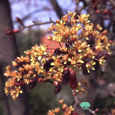 Breit und regelmässig auswachsender Baum, bis ca. 12 m hoch werdend. Grosses, glänzendes und dunkelbraunrotes Blatt. Herbstfärbung dunkelorange. Gelbgrüne Blüten im Monat April vor dem Erscheinen d...