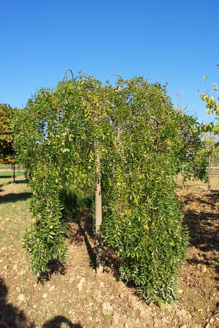 wachsender Baum mit bis nahe an den Boden herunterreichende, stark hängende Zweige.