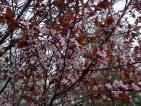 Blut-Pflaume 4-6m, Blatt: schwarzrot, Blüte: rosa III-IV, Frucht: rot, essbar, für Spielplätze geeignet, durch Blatt und Blüte sehr zierend.