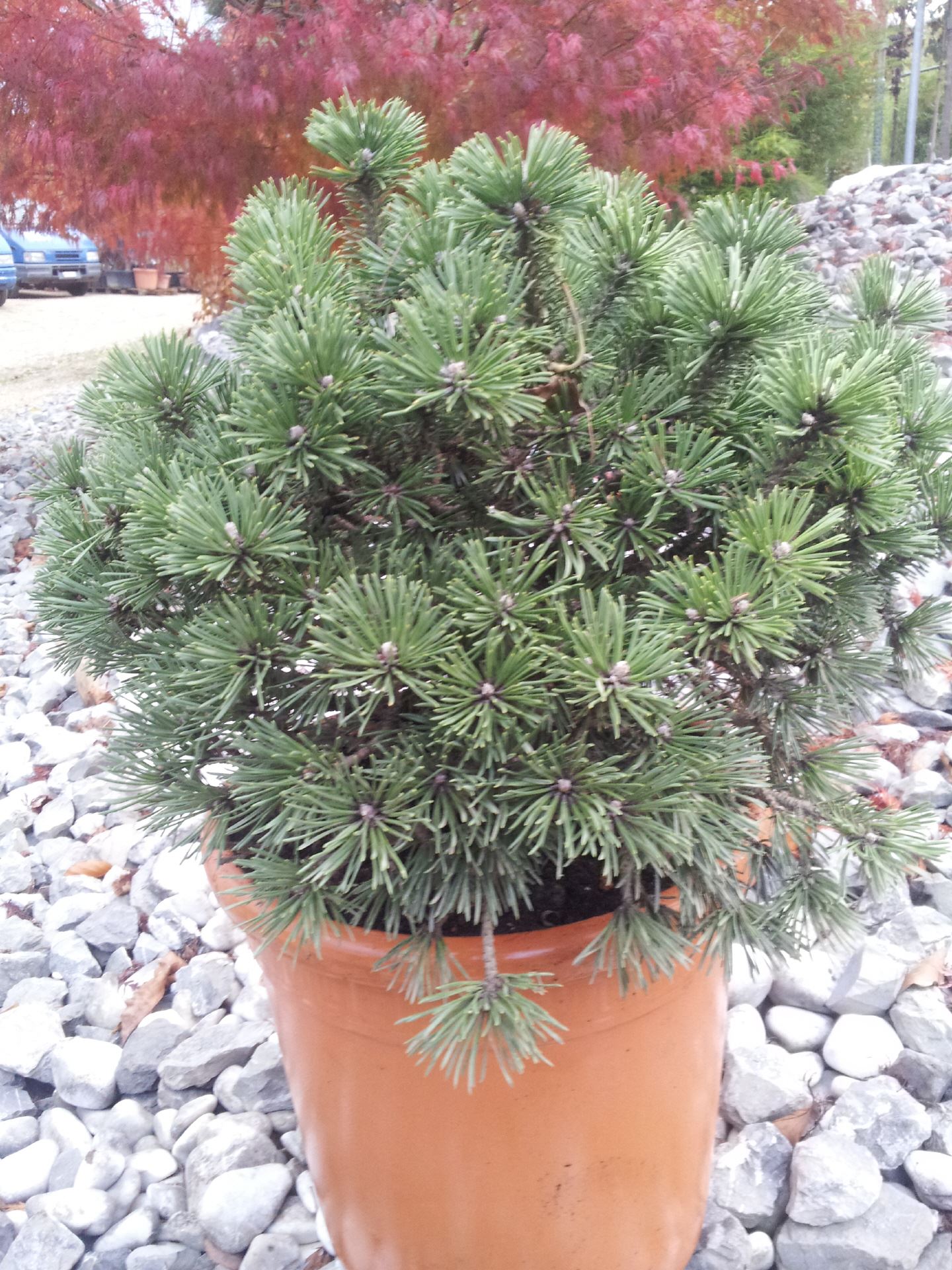 hochverzweigte, gedrungen langsam waschende zwergform, im Alter breiter als hoch, langsam wachsend, etwa 100 cm gross.
