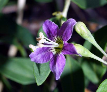 Blüten: Purpurn, später bräunlich, zu zweien oder zu vieren in den Blattachseln,