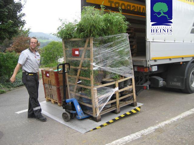 Artikel, die vorbestellt werden können, werden ausgeliefert, sobald diese wieder verfügbar sind. Eine Bestellung wird erst dann ausgeliefert, wenn alle Artikel vorrätig sind. Die Lieferung erfolgt per Spedition in pflanzenschonenden Paletten. Geliefert wird von uns selbst oder durch einen Spediteur, Vorraussetzung ist eine befahrbare Strasse für LKW.