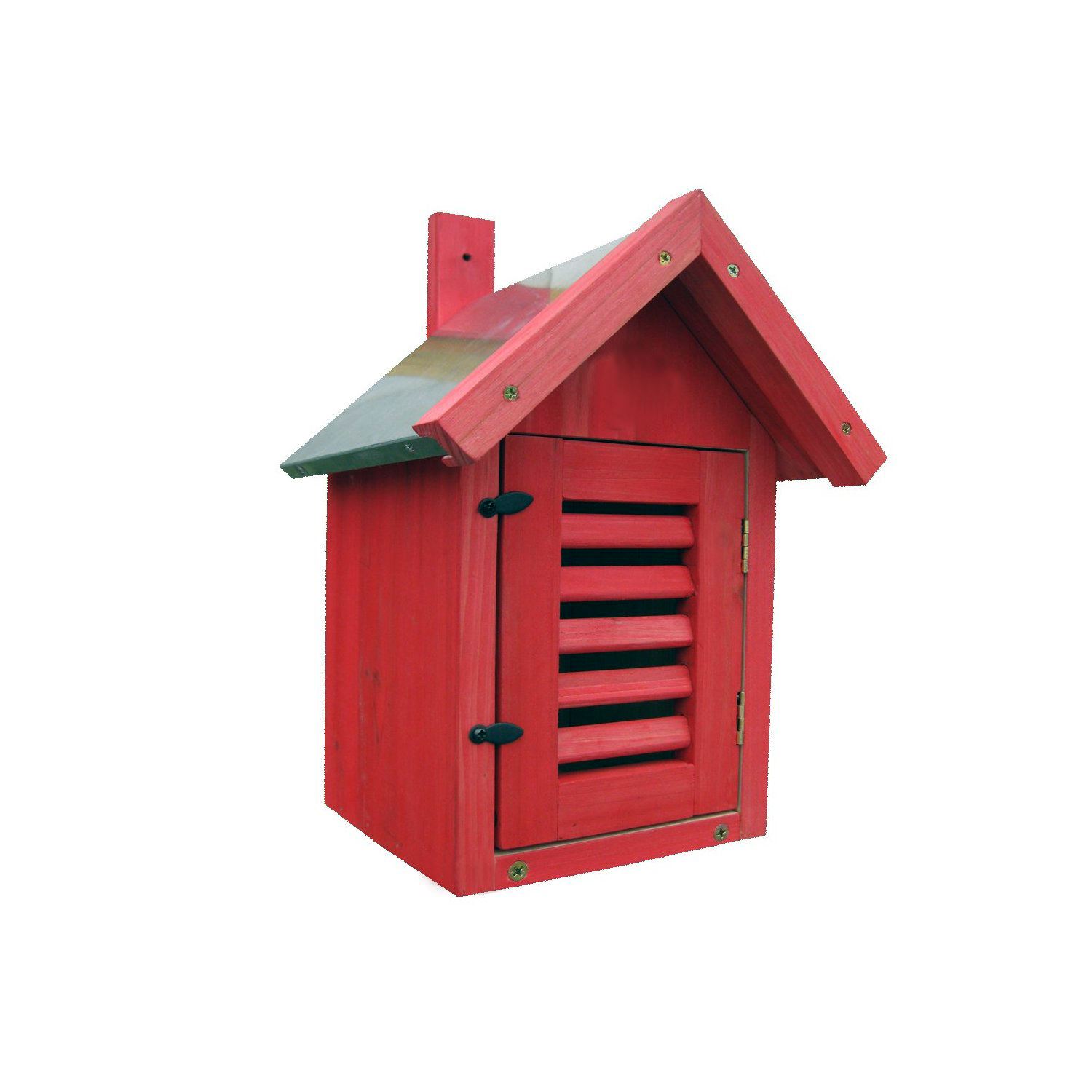 Jede Florfliege vertilgt bis zur Verpuppung etwa 500 Pflanzen parasitischen Blattläuse und Milben!Florfliegenkasten nach Südosten orientiert, in ca. 1,5 bis 1,8 m Höhe anbringen. Befüllt wird er am besten mit Stroh. Der Kasten ist rot, denn Florfliegen fliegen auf Rot!