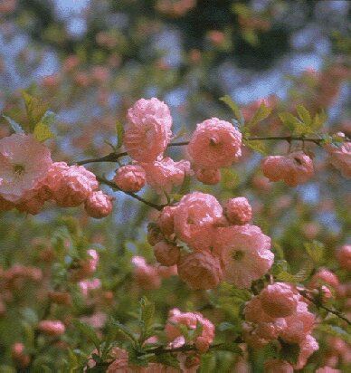 Aufrecht wachsender und offener Strauch, bis 1,5 m hoch werdend. sommergrün. Blatt dunkelgrün. Blüten rosa, gefüllt und sehr zahlreich. April-Mai. Sonne. Fruchtbare Böden. Nach der Blütezeit schneiden. Meistens als kleiner Baum gezüchtet.