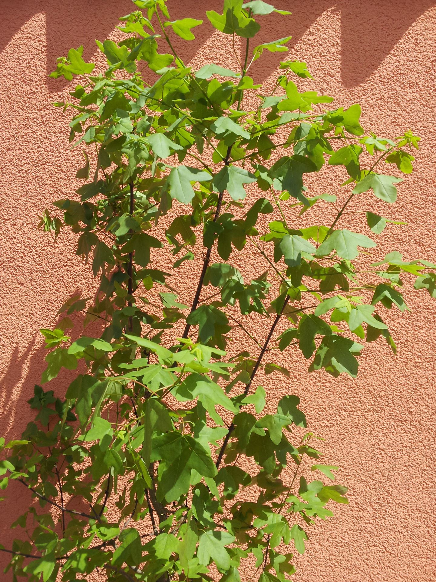 Die mit Acer campesire verwandte Ahorn - Art, die rund um das Mittelmeer auftritt, bildet einen kleinen, huschartigen Baum aus, der etwa 6-10m hoch wird. Er hat dunkelgrüne, relativ dicke Blätter von 3,5 5cm Länge mit je drei stumpfen Lappen. Blüten in aufrechten oder auch hängenden Schirmtrauben, gelbgrün. Staubgefässe der männlichen Blüten doppelt so lang als die Blumenkrone. Flügel der Früchte vorwärts gerichtet, etwas abstehend, oft mit den Rändern sich deckend. Der Baum verträgt Trockenheit gut und ist zudem frosthart. Seine kompakte Krone macht ihn als Strassenbaum und für Rasenflächen in Vorstadtgärten geeignet. Im Herbst nimmt er eine rötliche Färbung an.
