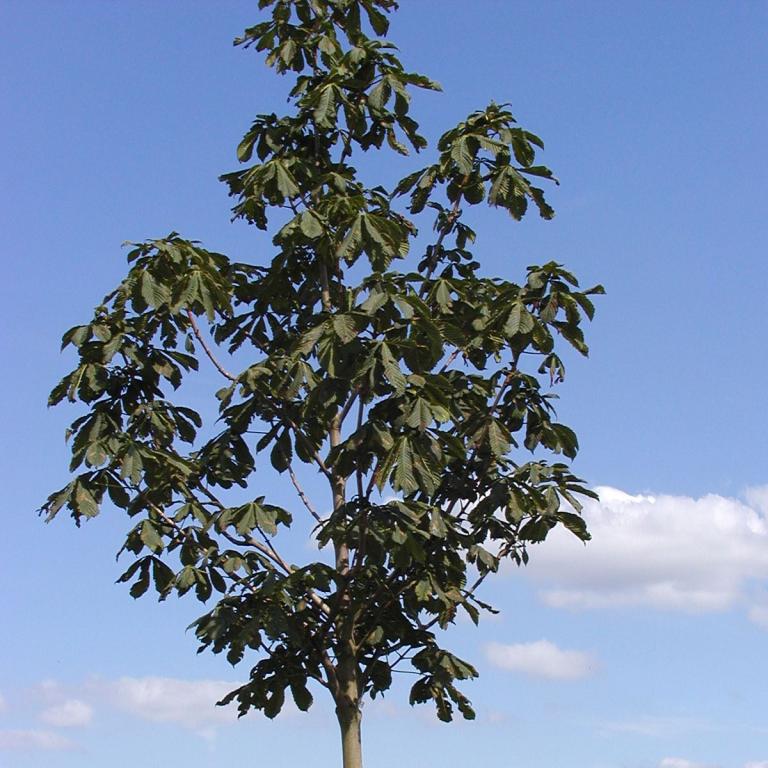 Baum mit runder Krone. Höhe ca. 15 m. Langsam wachsend. Großes, glänzend dunkelgrünes Laub. Früh im Austrieb. Aufrechte Dolden mit hellrosa Blüten. Mai. Für große Gärten geeignet.