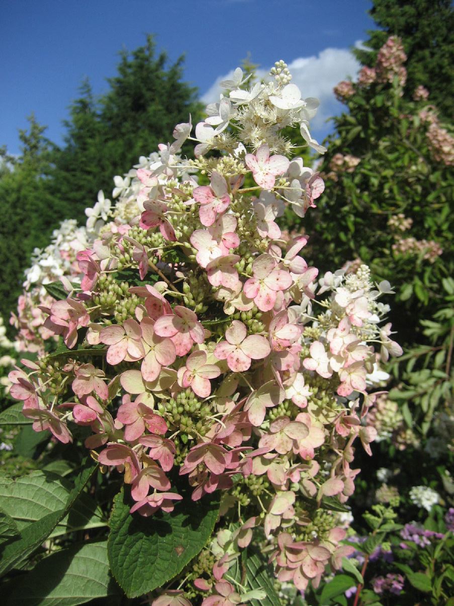 Mittelgrosser Strauch, welcher in ausgewachsenem Zustand 200-250cm wird. Diese Sorte wächst mittelstark. Wegen seinen Blüten wird der Straun angepflanzt. Die Farbe der Blätter sind dunkelgrün. Die Blüte ist weiss bis rosa pink. Die Blütezeit dauert von Juli bis September.