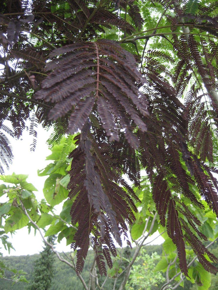 Bei dieser rotlaubigen Sorte handelt es ich um eine Neuzüchtung. Die Blätter sind doppelt gefiedert und das Aussergewöhnliche an dieser Seidenbaum-Neuzüchtung sind neben der herrlichen pinkfarbenen Sommerblüte die einmalig schön gefärbten Blätter, die sich bei Dunkelheit zusammen falten sich. In der Gattung der Schirmakazien ist der Seidenbaum die Art, die am weitesten in den gemässigten Klimazonen verbreitet ist. Die schirmförmige Krone mit ihren über dem Blatt stehenden roten Blüten eignet sich auch ausgezeichnet für den japanischen Garten. Dieser Baum ist winterhart bis -15 C. Er ist von Iran bis nach Ostchina weit verbreitet.