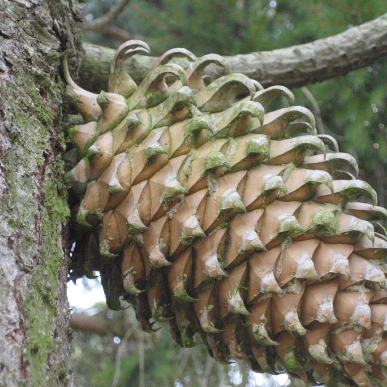Coulters Kiefer ist berühmt wegen ihrer grossen, bis 35 cm langen Zapfen. Diese kalifornische Art gedeiht auf fast allen Böden und verträgt Hitze, Wind und Trockenheit, aber keinen Frost. Sie wächst relativ rasch zu einem buschigen Baum von 30 m Höhe heran und hat bis zu 30 cm lange, hübsche, feste, in Dreierbüscheln wachsende, bläulich-grüne Nadeln und stachlige, braune Zapfen, die bis zu 40 cm lang werden und 2,5 kg wiegen können.