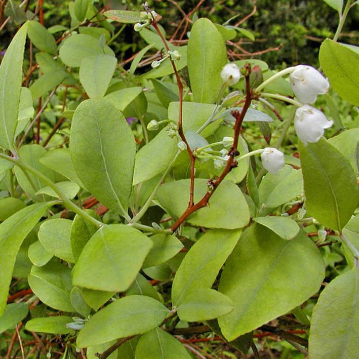 Halbwintergrüner Strauch bis ca. 7 cm hoch. Auffallend blau-weiss bereiftes Laub. Glockenförmige, rahmweisse Blüten im Mai und Juni. Sonnig bis halbschattig. Gedeiht auf humosen, leicht saurem Gartenböden.