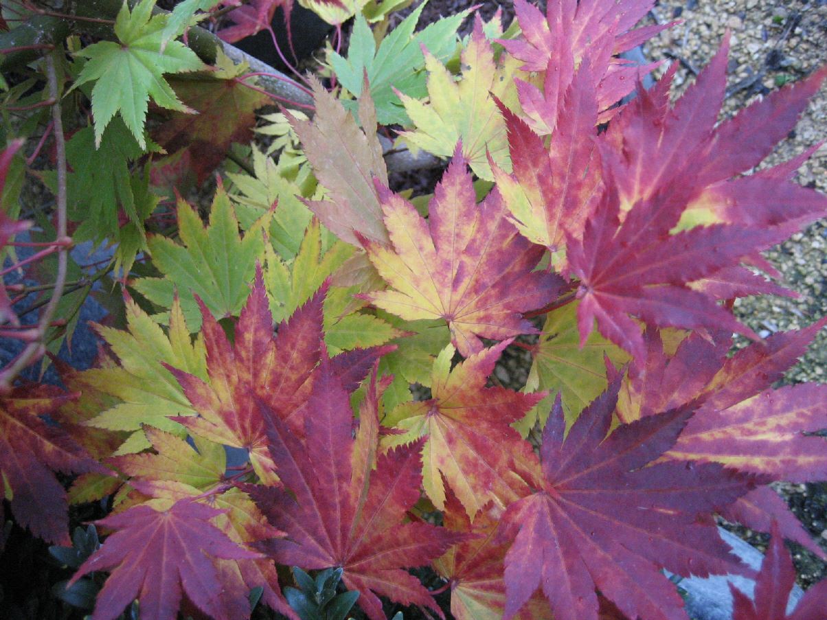 eingeschnittenen Blatt. Die Herbstfarbe in herrlichen Farben. Höhe 170 cm, Breite 125