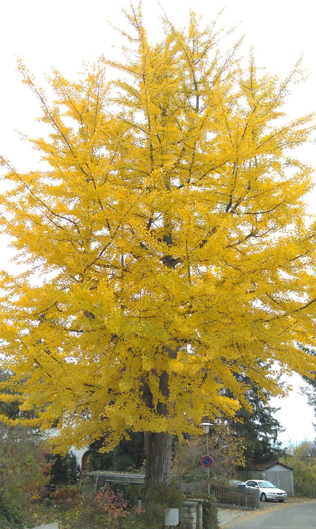 Ginkgo, 15-20m, Nadel: sommergrün, fächerförmig, gelbe Herbstfärbung, frische durchlässige Böden, anpassungsfähig, zweihäusig, Solitärbaum.