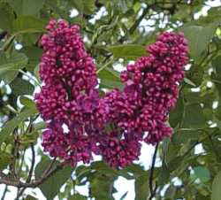 Edel-Flieder 3-4m, Blüte: dunkelpurpurrot, einfach, bis 30cm, duftend, Schnitt nach Abblühen fördert Blütenbildung, durchlässige Böden, gute Sorte für Freilland und Treiberei.