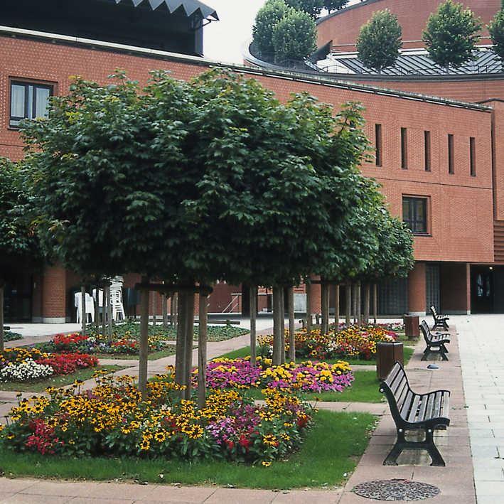 Ein Hausbaum mit kleiner Krone. Dieser Baum wird so breit, wie hoch: 4 - 6 m - und wird oft zum Nistplatz für Singvögel. Der Kugelahorn ist eine schwachwüchsige Sorte des Spitzahorn, wobei der buschig wachsende Ahorn auf Hochstamm veredelt wird. Dieser Baum eignet sich besonders für formale Gartenanlagen, für Eingangsbereiche und für kleine Alleen.