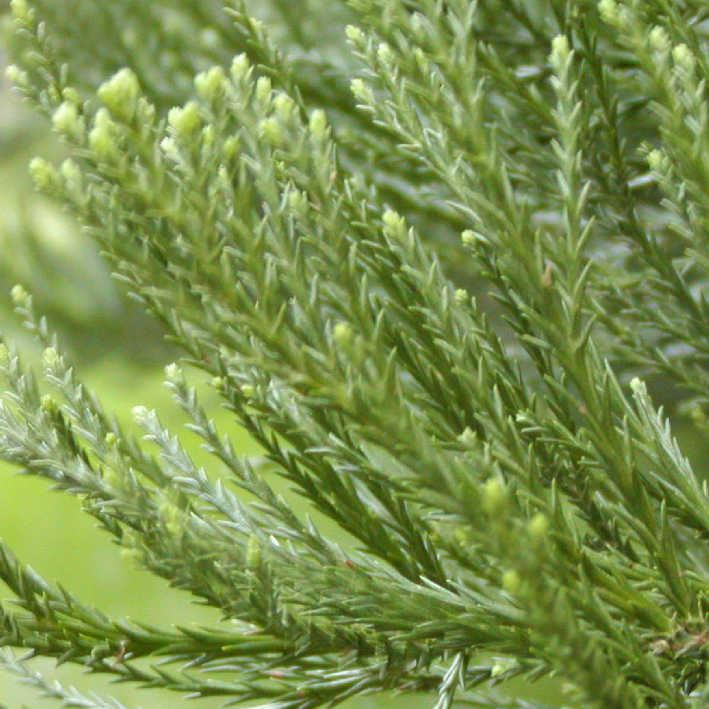 Blatt: Nadeln in drei Längsreihen spiralig, schuppenartig bis lanzettlich, scharf zugespitzt, den Zweigen mehr oder weniger angepresst, 3 - 6 mm, auch 1 - 2 mm lang