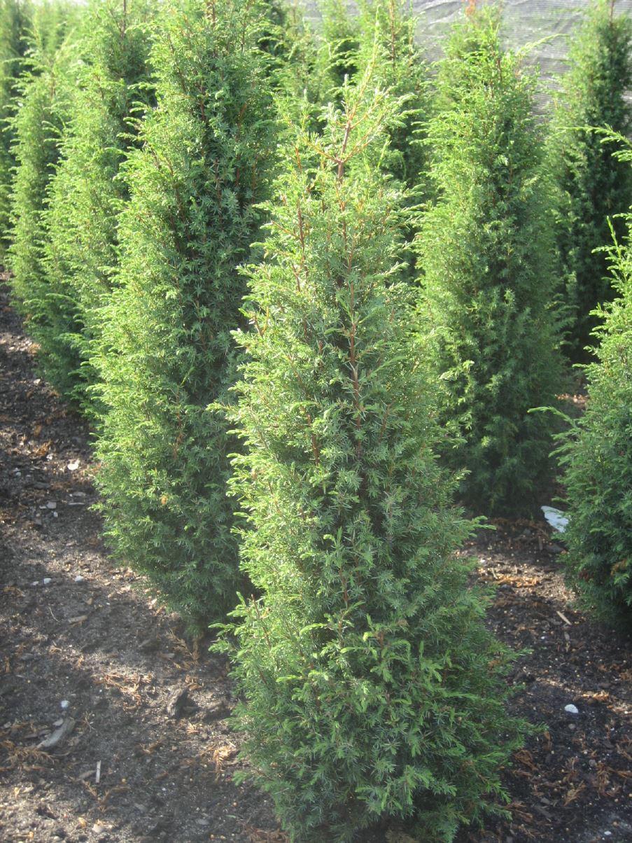 3-4m, Nadel: bläulich-grün, säulenförmig, schwarze Beeren, anspruchslos, kalkliebend, empfehlenswert.